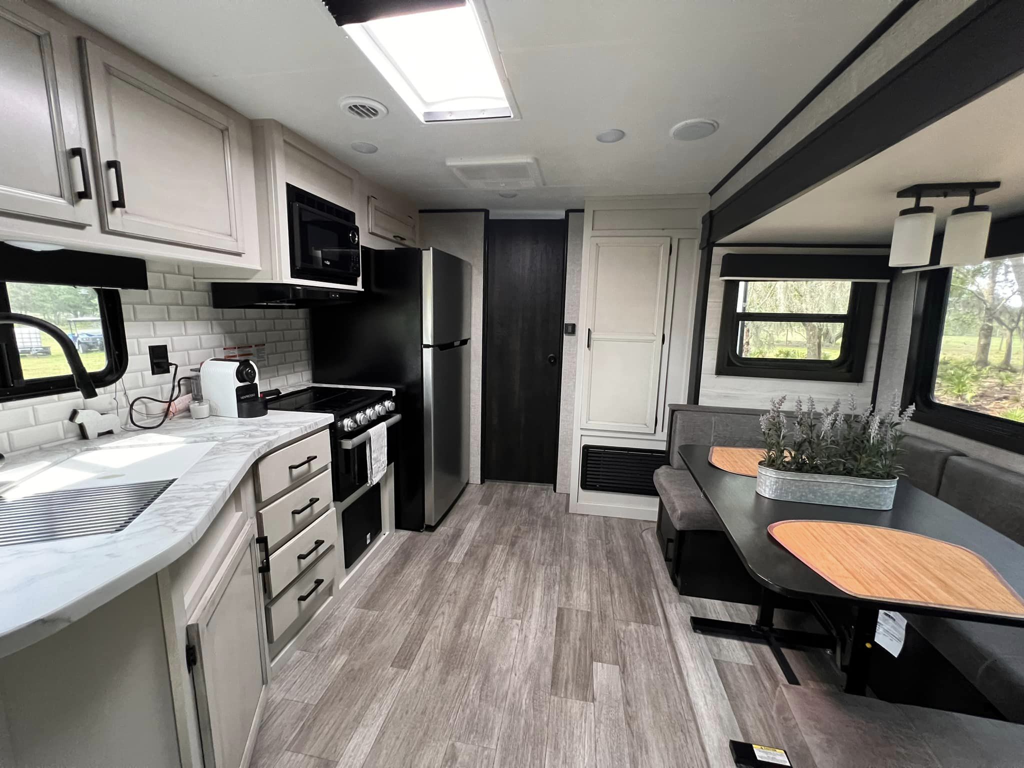 Our ranch stays are available year-round, making it easy to plan the perfect getaway. The cost is $250 per night. Accommodations include a fully furnished 2022 Jayco Jay Flight 38BHDS — a 38-foot, 2-bedroom/1-bath camper that comfortably sleeps up to six people. For larger groups, we also offer an additional 28-foot, 1-bedroom/1-bath camper for an extra charge.