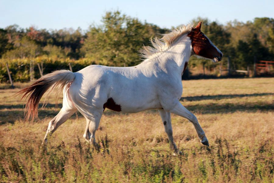 2004 American Paint Horse. She is our beauty Queen. Sonny`s leg got broken by a child jumping her too high at a very young age. She was on the way to the meat market while someone at the gas station fell in love with her markings and took her home. Sonny was taken a good care by her "new parent" and got back to health. We purchased her from the horse sale ranch. Sonny is a free spirit who loves to take a herd for the spin when the weather gets cool. Sonny is a good example of no matter how bad things are - you should never give up!